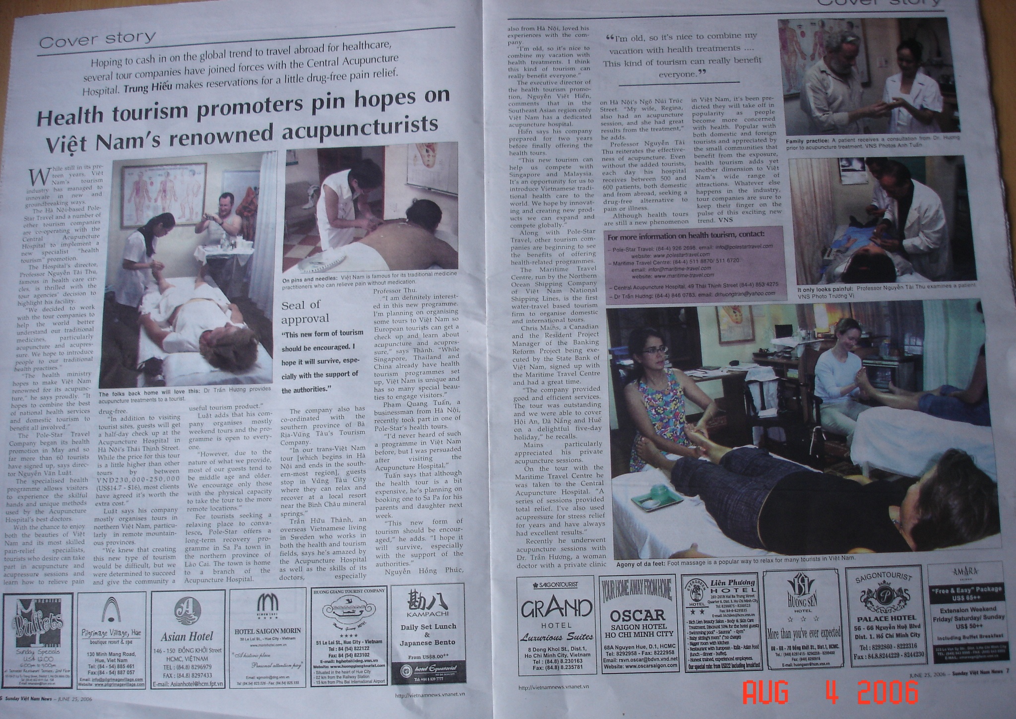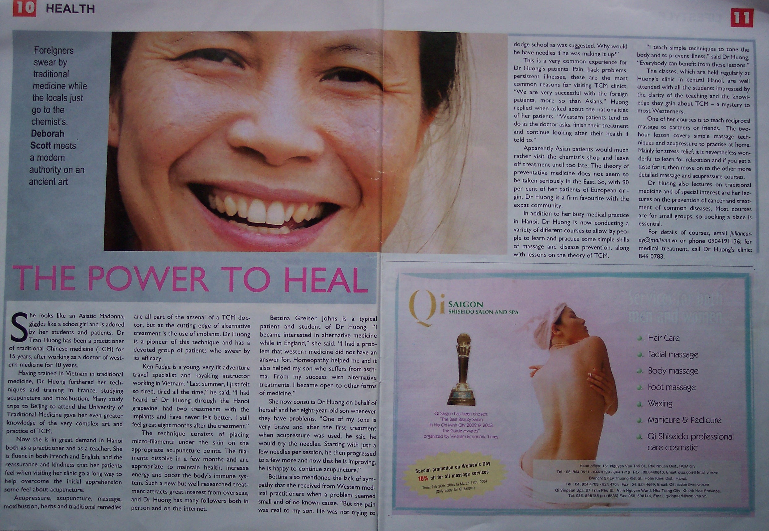 When I came to Vietnam I was encouraged to try a new treatment practiced by Dr. Huong’s ‘implants’ that involves putting a small sutures under the skin at strategic points on the body, the implants stimulate the acupressure points and help to unblock energy channels in the body.